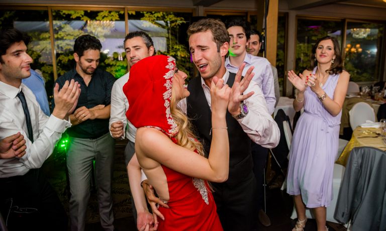 Soirée du Henne au Plateau de Gravelle dans le bois de Vincennes, Jessy arrive dans une superbe robe rouge traditionnelle et de circonstance pour ce Henne. François, Réalisateur chez Les yeux du Goupil est aussi présent pour filmer la suite du mariage civil de Jessy et Micka dont la cérémonie s’est déroulée dans la mairie du 16 ème à Paris. Le photographe mariage que je suis adore faire des photos de ces soirées du Henne, il y règne une telle effervescence que je me suis souvent posé la question de savoir si les Henné n’étaient pas plus intenses que les soirées des mariages Juifs. Les deux familles proches sont réunies et c’est l’occasion idéale pour le photographe mariage de faire des portraits de groupe en attendant l’entrée des mariés. Le Dj fait monter l’ambiance, les invités réunis sur la piste dansent déjà, des Youyou retentissent et l’euphorie est à son paroxysme quand notre couple d’amoureux fait son entrée et nous voilà parti pour une soirée de danse et de pure folie. Les hommes feront tourner le Micka pendant que les femmes s’occuperont de la même manière de Jessy. Bientôt nos deux mariés se retrouveront sur des chaises et se rencontreront pour un unique baiser aérien que l’on se doit de ne pas louper en tant que photographe de mariage pro !