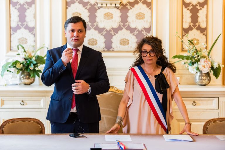 Ce sera la très souriante Sophie ELISIAN, Adjointe au Maire de Levallois-Perret, elle aussi Arménienne qui sera en charge d’unir notre couple. La cérémonie civile débutera par le discours en français de son Excellence qui nous avouera être l’ami et travailler avec Varduhi, ma mariée dans l’ambassade d’Arménie. Des rires et des hourra sous de nombreux applaudissements célèbreront cette union civile. Deux alliances CHANEL symboliseront leur union.