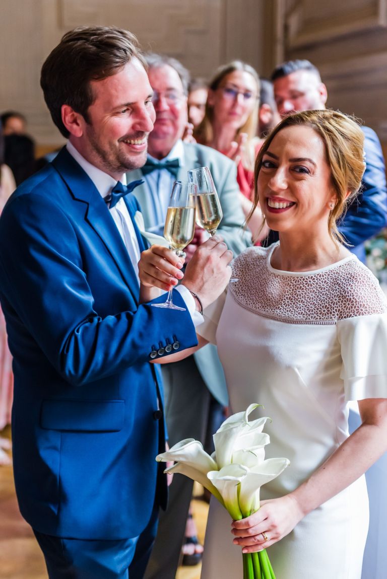 Après une sortie des mariés sous des bulles de savon et la joie des invités, nous sommes invités à rejoindre le Salon Ronsard pour une collation avec du « Champagne » KEUSH et vin arménien MESROP. Nous nous échappons avec mon couple et profitons de cette splendide Mairie vide pour y faire quelques photos de couple mais il faut toujours faire vite et l’on ne fait pas attendre les hauts dignitaires et guest impatients de trinquer aux nouveaux mariés.