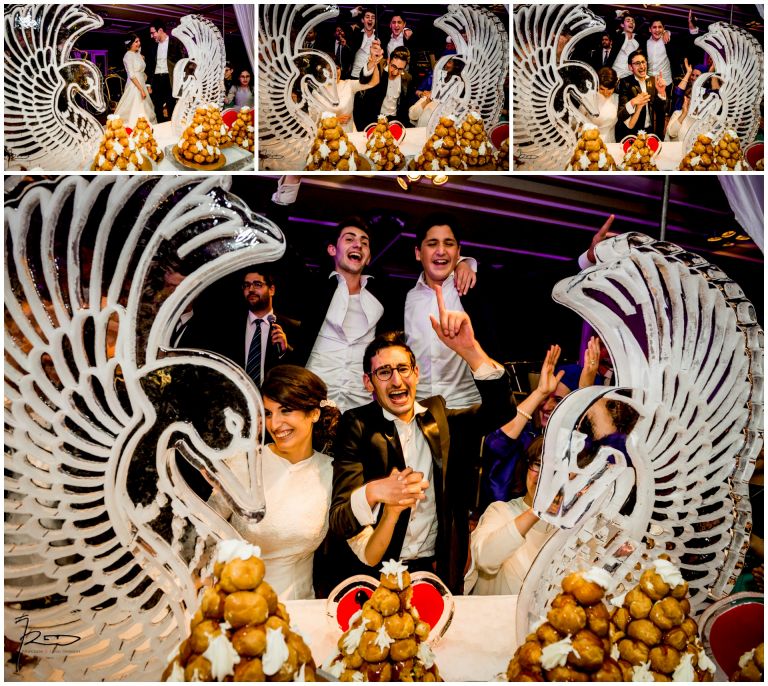 Photographe mariage Juif de Déborah & Uriel qui ont pris rendez vous un soir pour parler des photos de leur mariage Juif et très religieux qu’ils souhaitaient organiser à L’Hôtel Hyatt Régency de Paris. Déborah voulait absolument que cela soit moi leur photographe de mariage Juif. C’était déjà décidé avant même de me rencontrer. J’adore les clients comme ça !! Ils m’avaient informé que cela serait un mariage Juif très religieux et que le déroulement serait un peu différent de l’accoutumée. La Houpa ne serait pas dans une synagogue mais dans un Hôtel et que jusqu’à la cérémonie religieuse ils ne devaient pas se toucher. J’avais déjà fait des photos de mariage Juif très religieux à Paris et avait été photographe de Bar Mitzvah pour des Loubavitch. Rassurés, nous avons trinqué avec du « Mazeltov » un apéritif Cacher délicieux que j’avais acheté chez Noura. C’était un très beau reportage qu’ils me confiaient, riche en intensité et en émotions. Sans avoir fait de séance engagement à Paris avant le mariage, ils n’en voyaient pas l’utilité, c’est à la Marie du 14eme à Paris que je les ai retrouvée. D’un point de vue photographique, je n’aime pas trop cette mairie car il y fait très sombre, les murs sont en bois et la décoration dans les tonalités foncées, les fenêtres sont étroites et avec des vitraux de couleurs… ce qui me donne au final un travail énorme de retouche colorimétrique pour arriver à retrouver l’ambiance et des tons de peaux convenables !!! Après leur mariage civil c’en est suivi une série de photo de famille et une ultra rapide séance de photo de couple au Louvres et au Pont des Arts pour aller faire le cocktail directement chez les parents de Déborah. Un guet apens gastronomique !! Ces deux familles sont d’une gentillesse et font preuve d’une humilité que l’on ne retrouve que chez les très religieux. Ne se souciant que du bonheur des autres, c’est tous les membres , tour à tour qui me demandaient si jamais mangé de ceci et de ça, bu de ceci, bu de cela… impossible de dire non à chaque fois sous peine de faire de la peine. Tant pis pour la ligne, les patisseries orientales, j’adore ça !!! Vous percevrez aisément, toute l’intensité dans les photos de ce mariage Juif, à tel point que les hommes en ont cassé l’estrade sous la Houpa à force de sauter et danser. Quand l’un des Rabins présents les a déclaré mariés regardez leurs joies et Uriel prendre enfin la main de sa femme, il pouvait enfin la toucher !! Intense je vous dis… La soirée fût dantesque. J’avais un travail difficile à faire. J’étais le seul photographe de mariage, pas un second pour m’aider ni de vidéo de mariage et une grande Meritza était naturellement installée sur la piste de danse séparant les hommes et les femmes. Je passais toutes les minutes ma tête à travers le rideau pour voir ce qui se passait de l’autre côté et bien sûr ce fût une Simha comme jamais !!! Hahaha j’ai souffert mais j’ai tout shooté, j’ai rien raté, j’en suis fier et heureux de leur offrir toutes ces images et d’avoir pu honorer la confiance qu’ils avaient placé en moi. Super souvenirs.